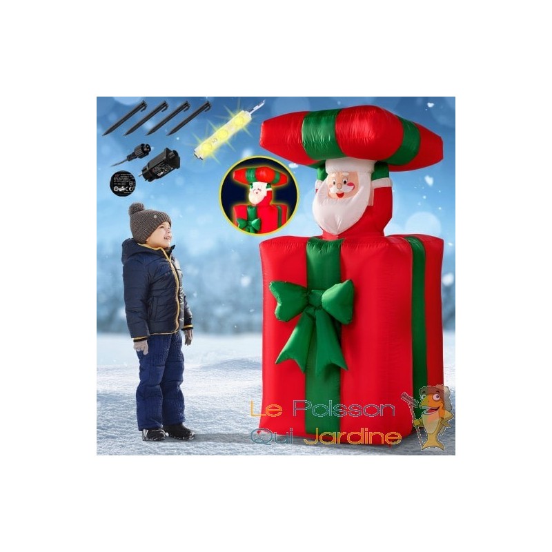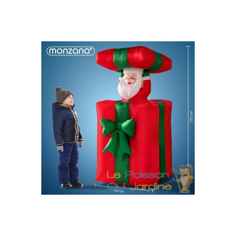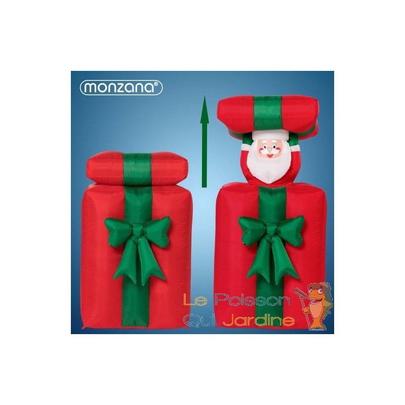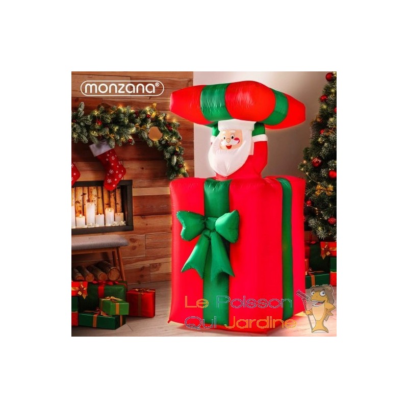 Ce Père Noël gonflable est le cadeau parfait pour la Saint-Nicolas et Noël. Il surprend en se levant et en s'abaissant automatiquement hors du paquet cadeau.