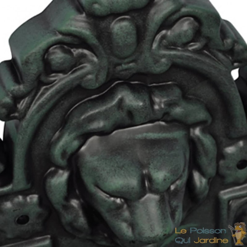 Dotée d'une pompe à eau, cette fontaine murale offre une expérience apaisante alors que l'eau s'écoule doucement à travers la tête du lion et retourne dans son bassin, créant un spectacle rafraîchissant et relaxant. Le design élégant de la tête de lion, associé au doux murmure de l'eau en mouvement, fait de cette fontaine un élément décoratif captivant pour tout espace extérieur.
