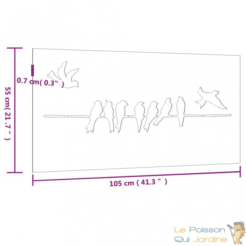 Le design exquis de cette décoration murale en métal présente des motifs creux d'oiseaux sur fil, ajoutant une touche de charme à votre jardin. Son installation est un jeu d'enfant grâce aux trous de fixation prévus à l'arrière, vous permettant de l'accrocher facilement où bon vous semble.