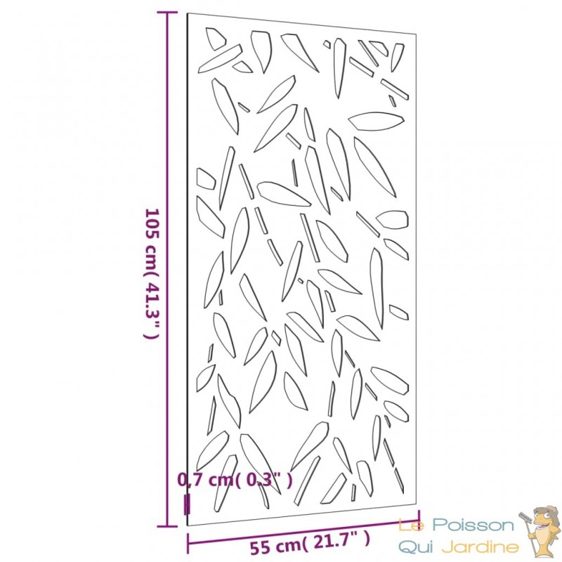Nos clients sont enchantés par l'idée d'incorporer notre décoration murale de jardin à leurs espaces tels que leur pool house ou leurs abris de jardin. En effet, cette pièce ajoute une dimension d'élégance et de sophistication à ces endroits souvent négligés. Imaginez la transformation instantanée de votre pool house en un espace de détente luxueux, où chaque détail, même le mur, contribue à l'atmosphère raffinée. De même, nos clients adorent l'idée d'embellir leurs abris de jardin avec cette décoration murale, transformant ainsi ces structures fonctionnelles en de véritables joyaux de leur jardin. C'est une manière unique de fusionner la beauté artistique avec l'utilité pratique, créant ainsi un espace extérieur qui inspire et enchante à la fois.Fabriquée à partir d'acier corten, également connu sous le nom d'acier patinable, cette pièce est conçue pour durer. L'acier corten est intrinsèquement anti-corrosif, développant une patine protectrice dès son exposition initiale aux éléments atmosphériques. Vous n'aurez ainsi pas à vous soucier de l'entretenir ou de le repeindre, ce qui vous permettra de réaliser des économies sur les coûts de maintenance à long terme. Sa couleur brunâtre distincte attire le regard et son caractère résistant aux intempéries garantit une durabilité exceptionnelle, défiant le passage du temps.