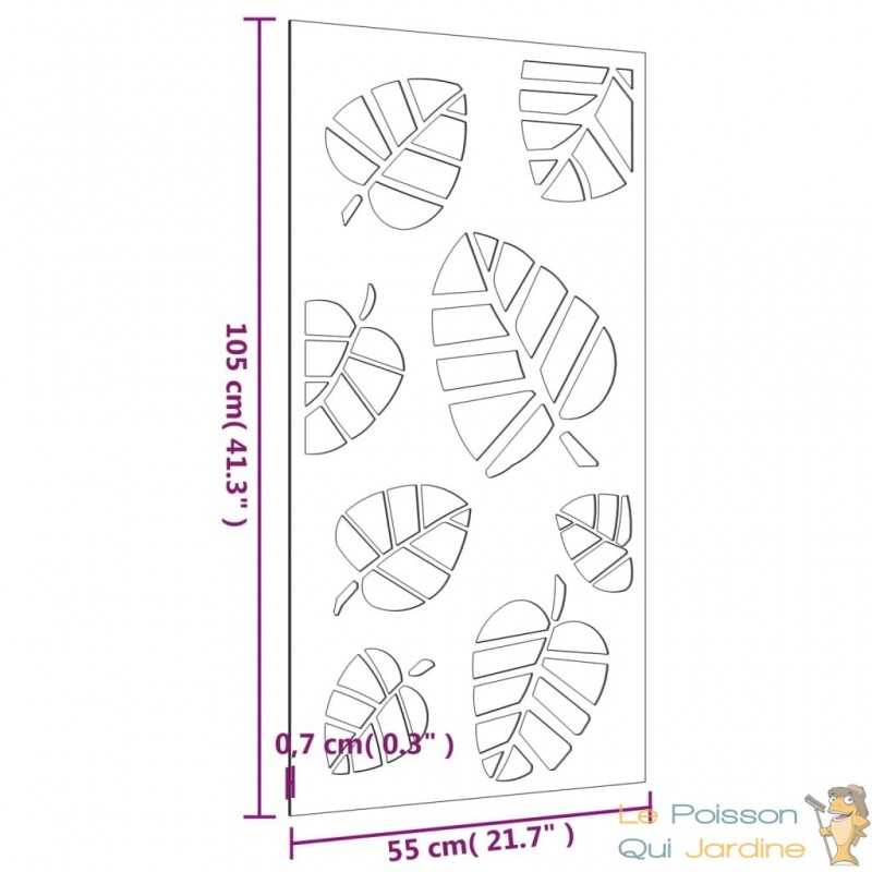 Nos clients sont enchantés par l'idée d'incorporer notre décoration murale de jardin à leurs espaces tels que leur pool house ou leurs abris de jardin. En effet, cette pièce ajoute une dimension d'élégance et de sophistication à ces endroits souvent négligés. Imaginez la transformation instantanée de votre pool house en un espace de détente luxueux, où chaque détail, même le mur, contribue à l'atmosphère raffinée. De même, nos clients adorent l'idée d'embellir leurs abris de jardin avec cette décoration murale, transformant ainsi ces structures fonctionnelles en de véritables joyaux de leur jardin. C'est une manière unique de fusionner la beauté artistique avec l'utilité pratique, créant ainsi un espace extérieur qui inspire et enchante à la fois.Fabriquée à partir d'acier corten, également connu sous le nom d'acier patinable, cette pièce est conçue pour durer. L'acier corten est intrinsèquement anti-corrosif, développant une patine protectrice dès son exposition initiale aux éléments atmosphériques. Vous n'aurez ainsi pas à vous soucier de l'entretenir ou de le repeindre, ce qui vous permettra de réaliser des économies sur les coûts de maintenance à long terme. Sa couleur brunâtre distincte attire le regard et son caractère résistant aux intempéries garantit une durabilité exceptionnelle, défiant le passage du temps.