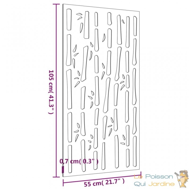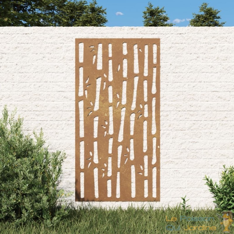 Nos clients sont enchantés par l'idée d'incorporer notre décoration murale de jardin à leurs espaces tels que leur pool house ou leurs abris de jardin. En effet, cette pièce ajoute une dimension d'élégance et de sophistication à ces endroits souvent négligés. Imaginez la transformation instantanée de votre pool house en un espace de détente luxueux, où chaque détail, même le mur, contribue à l'atmosphère raffinée. De même, nos clients adorent l'idée d'embellir leurs abris de jardin avec cette décoration murale, transformant ainsi ces structures fonctionnelles en de véritables joyaux de leur jardin. C'est une manière unique de fusionner la beauté artistique avec l'utilité pratique, créant ainsi un espace extérieur qui inspire et enchante à la fois.Fabriquée à partir d'acier corten, également connu sous le nom d'acier patinable, cette pièce est conçue pour durer. L'acier corten est intrinsèquement anti-corrosif, développant une patine protectrice dès son exposition initiale aux éléments atmosphériques. Vous n'aurez ainsi pas à vous soucier de l'entretenir ou de le repeindre, ce qui vous permettra de réaliser des économies sur les coûts de maintenance à long terme. Sa couleur brunâtre distincte attire le regard et son caractère résistant aux intempéries garantit une durabilité exceptionnelle, défiant le passage du temps.
