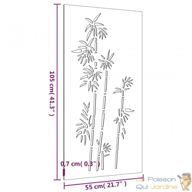 Nos clients sont enchantés par l'idée d'incorporer notre décoration murale de jardin à leurs espaces tels que leur pool house ou leurs abris de jardin. En effet, cette pièce ajoute une dimension d'élégance et de sophistication à ces endroits souvent négligés. Imaginez la transformation instantanée de votre pool house en un espace de détente luxueux, où chaque détail, même le mur, contribue à l'atmosphère raffinée. De même, nos clients adorent l'idée d'embellir leurs abris de jardin avec cette décoration murale, transformant ainsi ces structures fonctionnelles en de véritables joyaux de leur jardin. C'est une manière unique de fusionner la beauté artistique avec l'utilité pratique, créant ainsi un espace extérieur qui inspire et enchante à la fois.Fabriquée à partir d'acier corten, également connu sous le nom d'acier patinable, cette pièce est conçue pour durer. L'acier corten est intrinsèquement anti-corrosif, développant une patine protectrice dès son exposition initiale aux éléments atmosphériques. Vous n'aurez ainsi pas à vous soucier de l'entretenir ou de le repeindre, ce qui vous permettra de réaliser des économies sur les coûts de maintenance à long terme. Sa couleur brunâtre distincte attire le regard et son caractère résistant aux intempéries garantit une durabilité exceptionnelle, défiant le passage du temps.