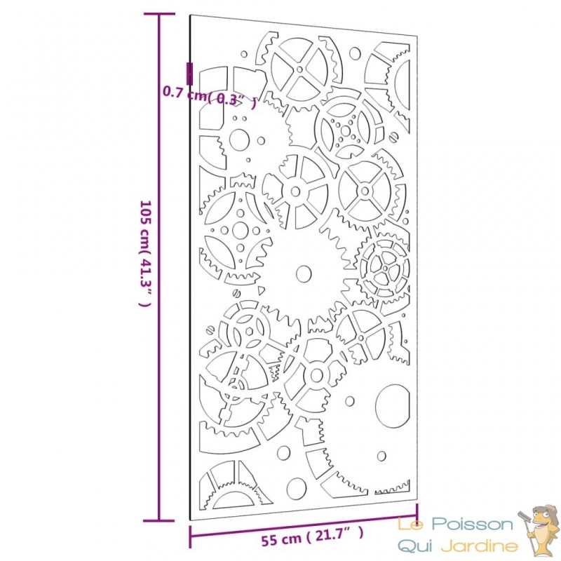 Nos clients sont enchantés par l'idée d'incorporer notre décoration murale de jardin à leurs espaces tels que leur pool house ou leurs abris de jardin. En effet, cette pièce ajoute une dimension d'élégance et de sophistication à ces endroits souvent négligés. Imaginez la transformation instantanée de votre pool house en un espace de détente luxueux, où chaque détail, même le mur, contribue à l'atmosphère raffinée. De même, nos clients adorent l'idée d'embellir leurs abris de jardin avec cette décoration murale, transformant ainsi ces structures fonctionnelles en de véritables joyaux de leur jardin. C'est une manière unique de fusionner la beauté artistique avec l'utilité pratique, créant ainsi un espace extérieur qui inspire et enchante à la fois.Fabriquée à partir d'acier corten, également connu sous le nom d'acier patinable, cette pièce est conçue pour durer. L'acier corten est intrinsèquement anti-corrosif, développant une patine protectrice dès son exposition initiale aux éléments atmosphériques. Vous n'aurez ainsi pas à vous soucier de l'entretenir ou de le repeindre, ce qui vous permettra de réaliser des économies sur les coûts de maintenance à long terme. Sa couleur brunâtre distincte attire le regard et son caractère résistant aux intempéries garantit une durabilité exceptionnelle, défiant le passage du temps.