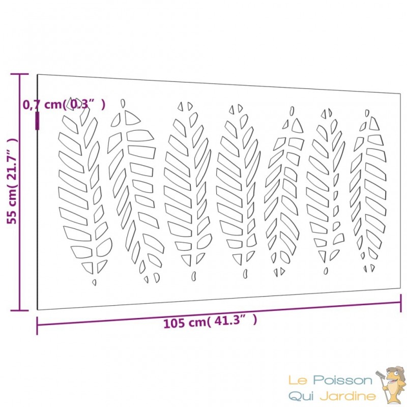 Nos clients sont enchantés par l'idée d'incorporer notre décoration murale de jardin à leurs espaces tels que leur pool house ou leurs abris de jardin. En effet, cette pièce ajoute une dimension d'élégance et de sophistication à ces endroits souvent négligés. Imaginez la transformation instantanée de votre pool house en un espace de détente luxueux, où chaque détail, même le mur, contribue à l'atmosphère raffinée. De même, nos clients adorent l'idée d'embellir leurs abris de jardin avec cette décoration murale, transformant ainsi ces structures fonctionnelles en de véritables joyaux de leur jardin. C'est une manière unique de fusionner la beauté artistique avec l'utilité pratique, créant ainsi un espace extérieur qui inspire et enchante à la fois.Fabriquée à partir d'acier corten, également connu sous le nom d'acier patinable, cette pièce est conçue pour durer. L'acier corten est intrinsèquement anti-corrosif, développant une patine protectrice dès son exposition initiale aux éléments atmosphériques. Vous n'aurez ainsi pas à vous soucier de l'entretenir ou de le repeindre, ce qui vous permettra de réaliser des économies sur les coûts de maintenance à long terme. Sa couleur brunâtre distincte attire le regard et son caractère résistant aux intempéries garantit une durabilité exceptionnelle, défiant le passage du temps.