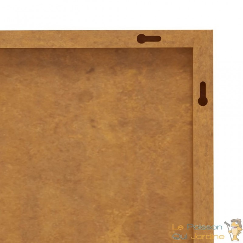 Nos clients sont enchantés par l'idée d'incorporer notre décoration murale de jardin à leurs espaces tels que leur pool house ou leurs abris de jardin. En effet, cette pièce ajoute une dimension d'élégance et de sophistication à ces endroits souvent négligés. Imaginez la transformation instantanée de votre pool house en un espace de détente luxueux, où chaque détail, même le mur, contribue à l'atmosphère raffinée. De même, nos clients adorent l'idée d'embellir leurs abris de jardin avec cette décoration murale, transformant ainsi ces structures fonctionnelles en de véritables joyaux de leur jardin. C'est une manière unique de fusionner la beauté artistique avec l'utilité pratique, créant ainsi un espace extérieur qui inspire et enchante à la fois.Fabriquée à partir d'acier corten, également connu sous le nom d'acier patinable, cette pièce est conçue pour durer. L'acier corten est intrinsèquement anti-corrosif, développant une patine protectrice dès son exposition initiale aux éléments atmosphériques. Vous n'aurez ainsi pas à vous soucier de l'entretenir ou de le repeindre, ce qui vous permettra de réaliser des économies sur les coûts de maintenance à long terme. Sa couleur brunâtre distincte attire le regard et son caractère résistant aux intempéries garantit une durabilité exceptionnelle, défiant le passage du temps.