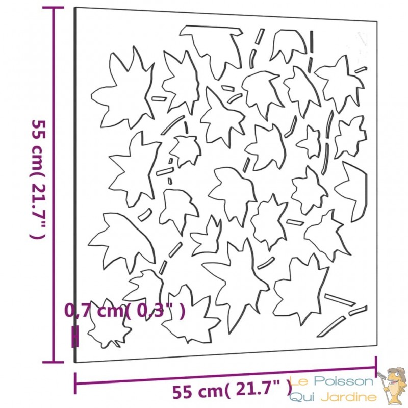 Nos clients sont enchantés par l'idée d'incorporer notre décoration murale de jardin à leurs espaces tels que leur pool house ou leurs abris de jardin. En effet, cette pièce ajoute une dimension d'élégance et de sophistication à ces endroits souvent négligés. Imaginez la transformation instantanée de votre pool house en un espace de détente luxueux, où chaque détail, même le mur, contribue à l'atmosphère raffinée. De même, nos clients adorent l'idée d'embellir leurs abris de jardin avec cette décoration murale, transformant ainsi ces structures fonctionnelles en de véritables joyaux de leur jardin. C'est une manière unique de fusionner la beauté artistique avec l'utilité pratique, créant ainsi un espace extérieur qui inspire et enchante à la fois.Fabriquée à partir d'acier corten, également connu sous le nom d'acier patinable, cette pièce est conçue pour durer. L'acier corten est intrinsèquement anti-corrosif, développant une patine protectrice dès son exposition initiale aux éléments atmosphériques. Vous n'aurez ainsi pas à vous soucier de l'entretenir ou de le repeindre, ce qui vous permettra de réaliser des économies sur les coûts de maintenance à long terme. Sa couleur brunâtre distincte attire le regard et son caractère résistant aux intempéries garantit une durabilité exceptionnelle, défiant le passage du temps.