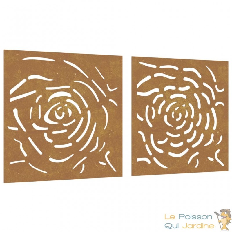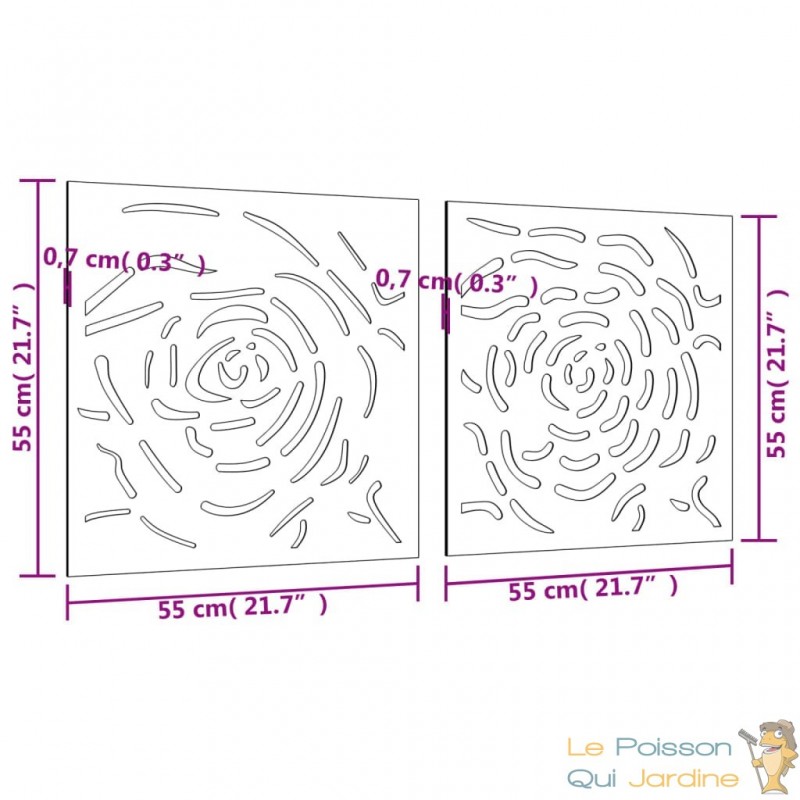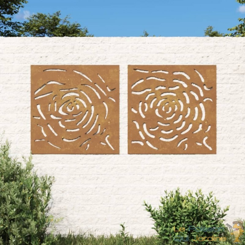 Nos clients sont enchantés par l'idée d'incorporer notre décoration murale de jardin à leurs espaces tels que leur pool house ou leurs abris de jardin. En effet, cette pièce ajoute une dimension d'élégance et de sophistication à ces endroits souvent négligés. Imaginez la transformation instantanée de votre pool house en un espace de détente luxueux, où chaque détail, même le mur, contribue à l'atmosphère raffinée. De même, nos clients adorent l'idée d'embellir leurs abris de jardin avec cette décoration murale, transformant ainsi ces structures fonctionnelles en de véritables joyaux de leur jardin. C'est une manière unique de fusionner la beauté artistique avec l'utilité pratique, créant ainsi un espace extérieur qui inspire et enchante à la fois.Fabriquée à partir d'acier corten, également connu sous le nom d'acier patinable, cette pièce est conçue pour durer. L'acier corten est intrinsèquement anti-corrosif, développant une patine protectrice dès son exposition initiale aux éléments atmosphériques. Vous n'aurez ainsi pas à vous soucier de l'entretenir ou de le repeindre, ce qui vous permettra de réaliser des économies sur les coûts de maintenance à long terme. Sa couleur brunâtre distincte attire le regard et son caractère résistant aux intempéries garantit une durabilité exceptionnelle, défiant le passage du temps.