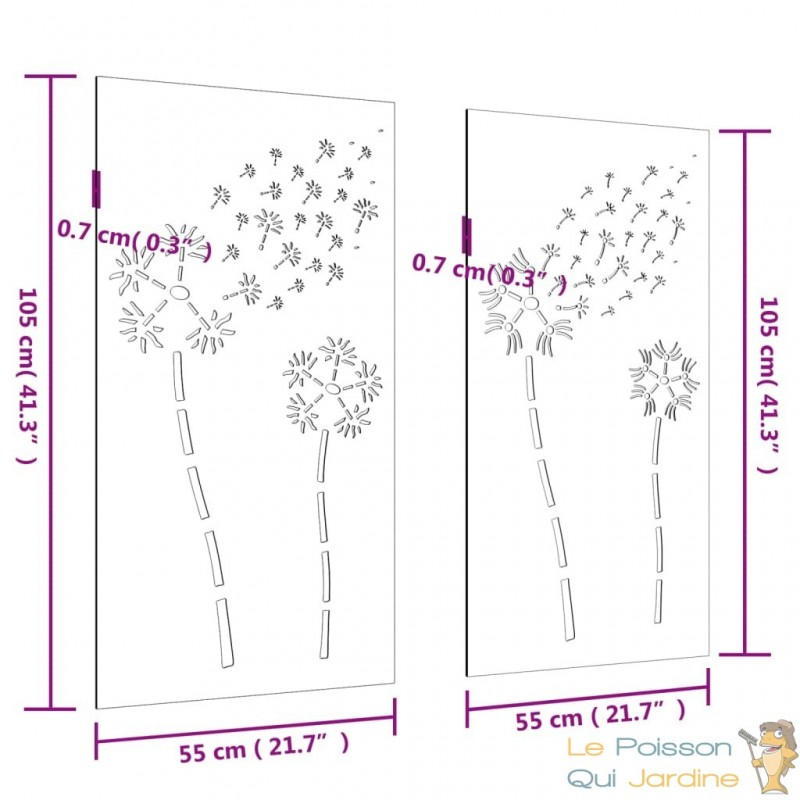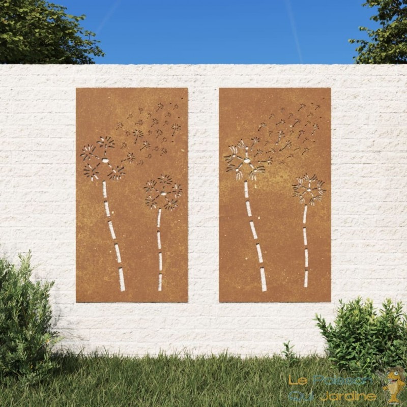 Nos clients sont enchantés par l'idée d'incorporer notre décoration murale de jardin à leurs espaces tels que leur pool house ou leurs abris de jardin. En effet, cette pièce ajoute une dimension d'élégance et de sophistication à ces endroits souvent négligés. Imaginez la transformation instantanée de votre pool house en un espace de détente luxueux, où chaque détail, même le mur, contribue à l'atmosphère raffinée. De même, nos clients adorent l'idée d'embellir leurs abris de jardin avec cette décoration murale, transformant ainsi ces structures fonctionnelles en de véritables joyaux de leur jardin. C'est une manière unique de fusionner la beauté artistique avec l'utilité pratique, créant ainsi un espace extérieur qui inspire et enchante à la fois.Fabriquée à partir d'acier corten, également connu sous le nom d'acier patinable, cette pièce est conçue pour durer. L'acier corten est intrinsèquement anti-corrosif, développant une patine protectrice dès son exposition initiale aux éléments atmosphériques. Vous n'aurez ainsi pas à vous soucier de l'entretenir ou de le repeindre, ce qui vous permettra de réaliser des économies sur les coûts de maintenance à long terme. Sa couleur brunâtre distincte attire le regard et son caractère résistant aux intempéries garantit une durabilité exceptionnelle, défiant le passage du temps.