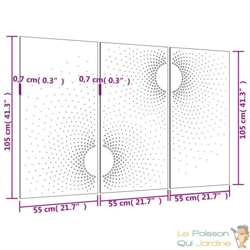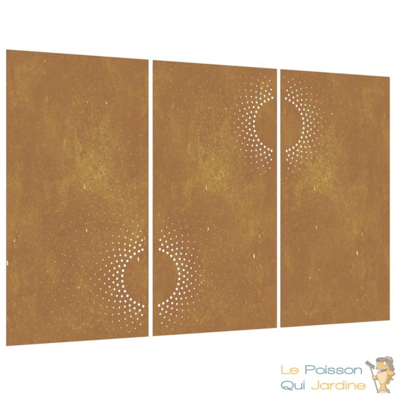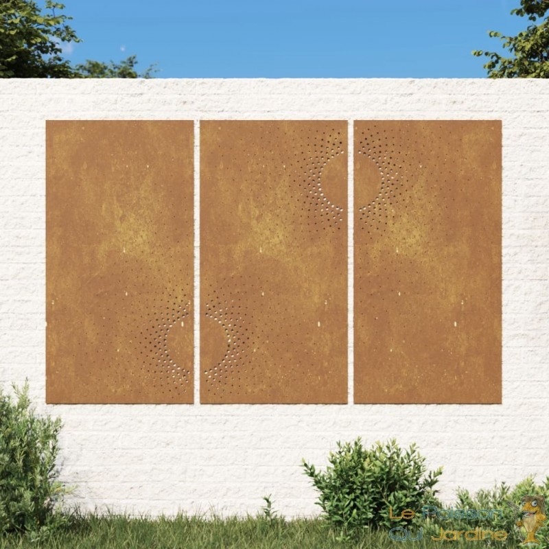 Nos clients sont enchantés par l'idée d'incorporer notre décoration murale de jardin à leurs espaces tels que leur pool house ou leurs abris de jardin. En effet, cette pièce ajoute une dimension d'élégance et de sophistication à ces endroits souvent négligés. Imaginez la transformation instantanée de votre pool house en un espace de détente luxueux, où chaque détail, même le mur, contribue à l'atmosphère raffinée. De même, nos clients adorent l'idée d'embellir leurs abris de jardin avec cette décoration murale, transformant ainsi ces structures fonctionnelles en de véritables joyaux de leur jardin. C'est une manière unique de fusionner la beauté artistique avec l'utilité pratique, créant ainsi un espace extérieur qui inspire et enchante à la fois.Fabriquée à partir d'acier corten, également connu sous le nom d'acier patinable, cette pièce est conçue pour durer. L'acier corten est intrinsèquement anti-corrosif, développant une patine protectrice dès son exposition initiale aux éléments atmosphériques. Vous n'aurez ainsi pas à vous soucier de l'entretenir ou de le repeindre, ce qui vous permettra de réaliser des économies sur les coûts de maintenance à long terme. Sa couleur brunâtre distincte attire le regard et son caractère résistant aux intempéries garantit une durabilité exceptionnelle, défiant le passage du temps.