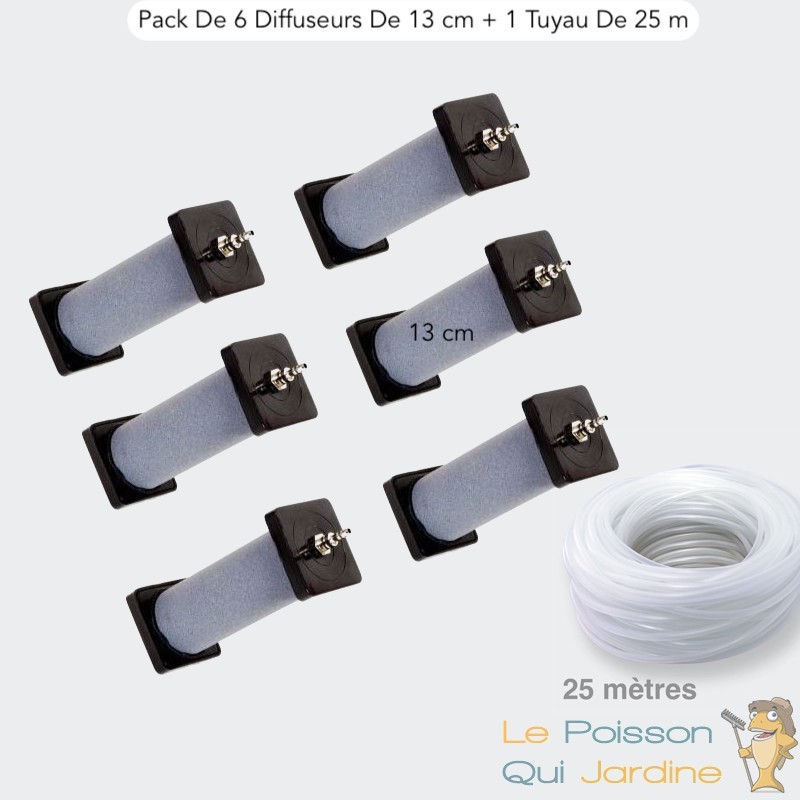 Enfin, si vous possédez un grand étangs, nous vous conseillons de prendre le modèle XXL qui est complètement similaire mais qui mesure 30 cm de longueur. Bien entendu, la diffusion des bulles est beaucoup plus importante. Nous vous le proposons aussi à l'unité, en lot économique de 3 grands diffuseurs ou en lot économique de 6 diffuseurs.