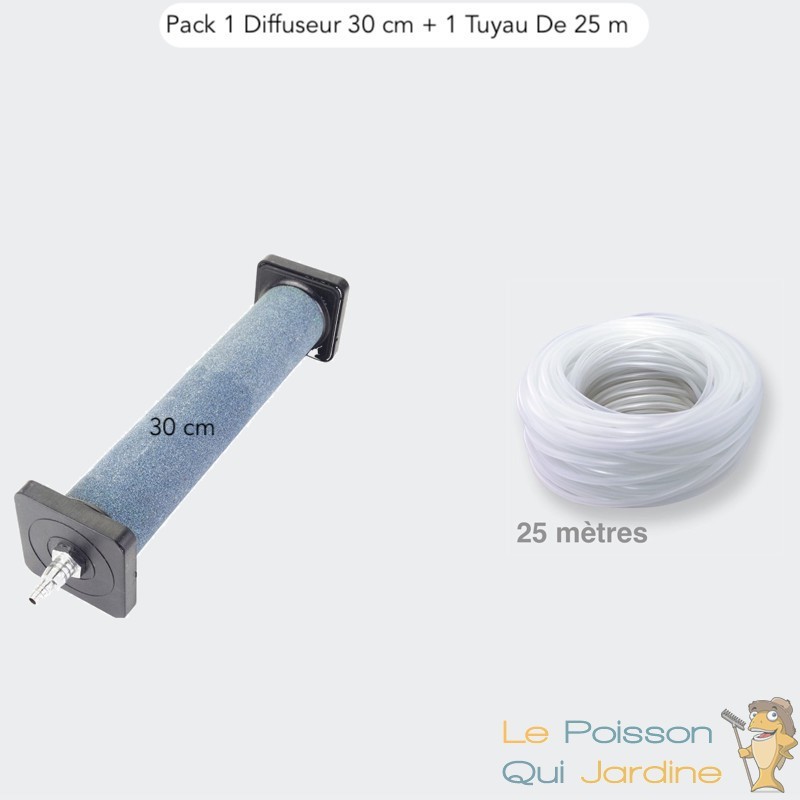 Nous vous proposons un diffuseur pour pompe à air ou compresseur. Diffuseur de 30 cm très souvent utilisé par les éleveurs de carpes au Japon + 1 tuyau de 25 mètres.