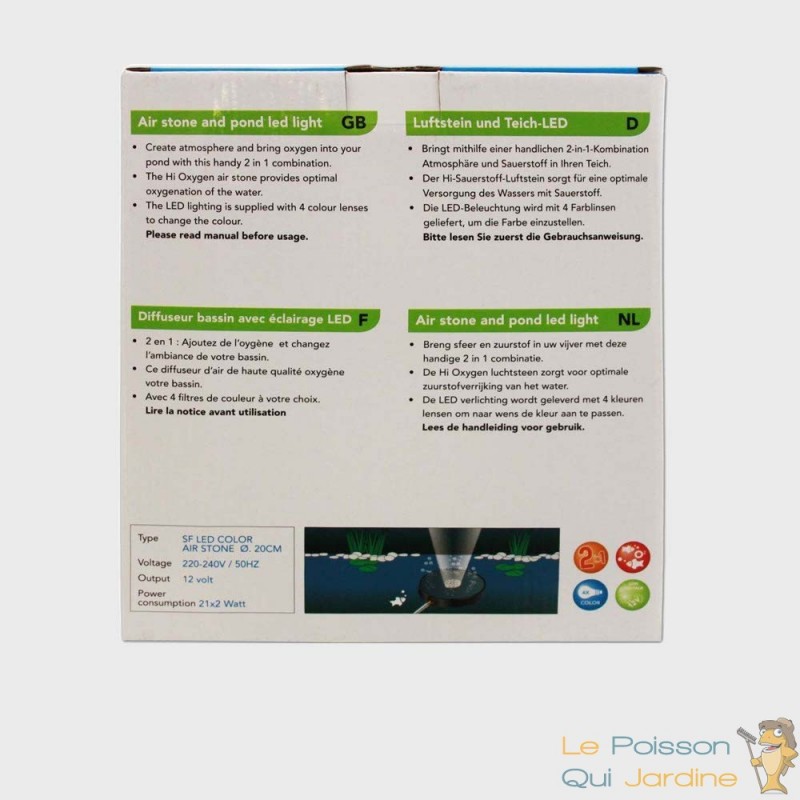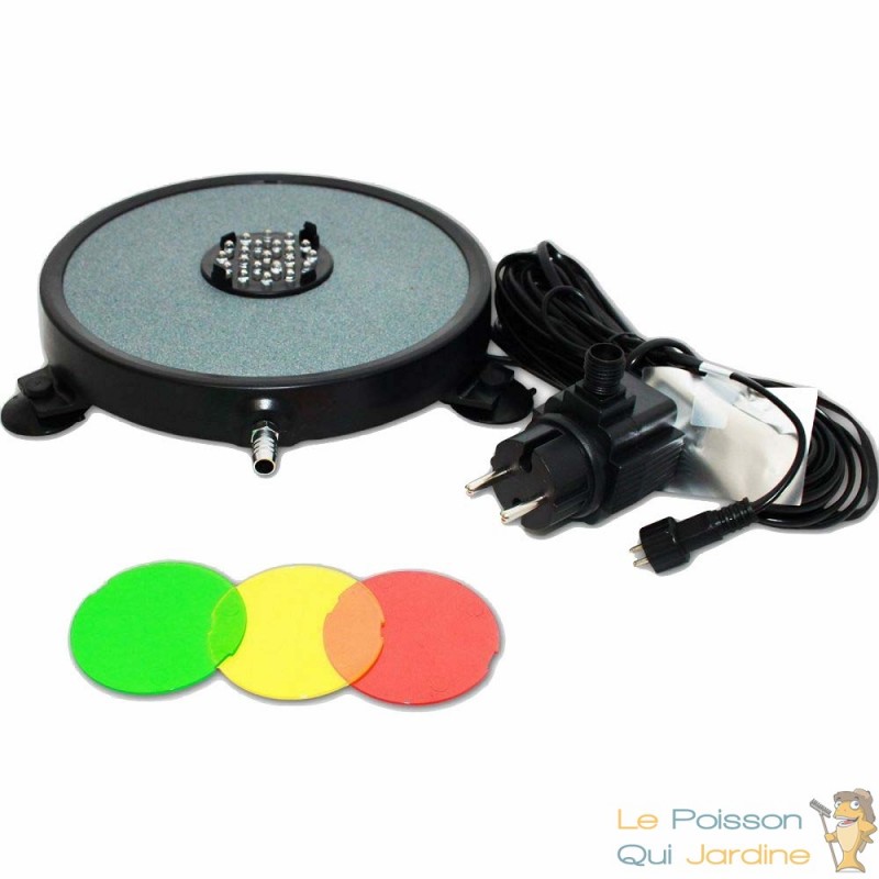 En plus d'apporter de l'oxygène dans votre bassin ce diffuseur apportera une lumière chaleureuse. Vous pouvez modifier la couleur grâce à ses 3 lentilles de couleur.