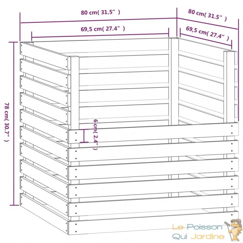 Bois de Pin Massif : Fabriqué en bois de pin massif, ce composteur présente une beauté naturelle. Son grain droit et ses nœuds lui confèrent un aspect caractéristique et rustique, s'intégrant harmonieusement dans votre espace.