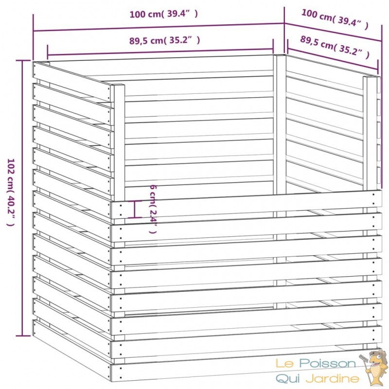 Bois de Pin Massif : Fabriqué en bois de pin massif, ce composteur présente une beauté naturelle. Son grain droit et ses nœuds lui confèrent un aspect caractéristique et rustique, s'intégrant harmonieusement dans votre espace.