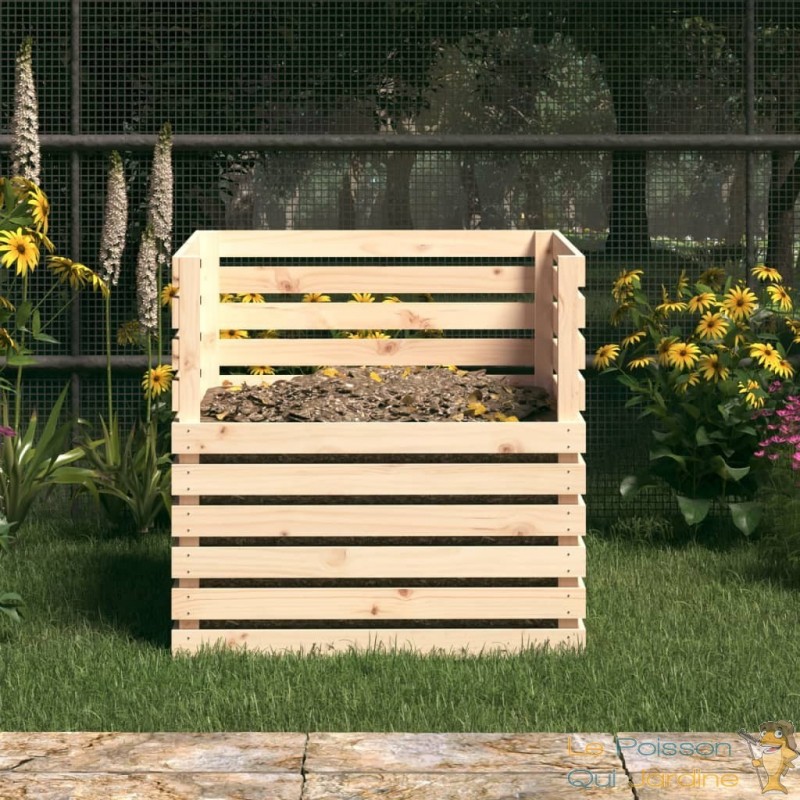 Bois de Pin Massif : Fabriqué en bois de pin massif, ce composteur présente une beauté naturelle. Son grain droit et ses nœuds lui confèrent un aspect caractéristique et rustique, s'intégrant harmonieusement dans votre espace.