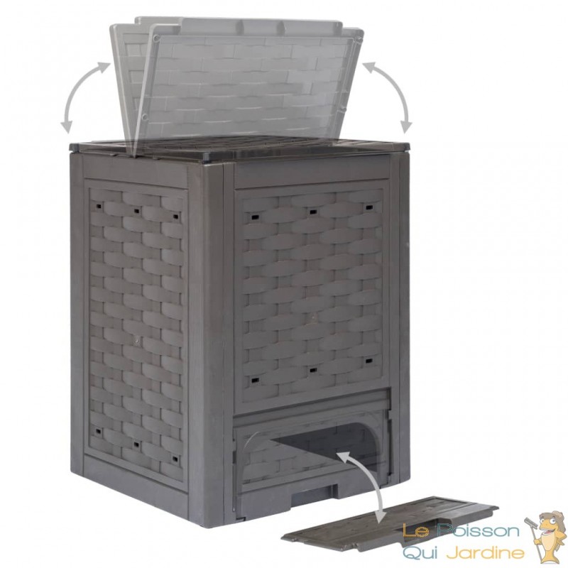 Fabriqué en plastique résistant aux UV et aux intempéries, ce bac à compost garantit une durabilité accrue face aux conditions extérieures changeantes. Son corps léger facilite son déplacement, tandis que son esthétique soignée ajoute une touche esthétique à tout espace de jardin. Équipé d'un couvercle en deux parties, cet équipement permet une irrigation et une ventilation optimales, favorisant ainsi un processus de compostage efficace.