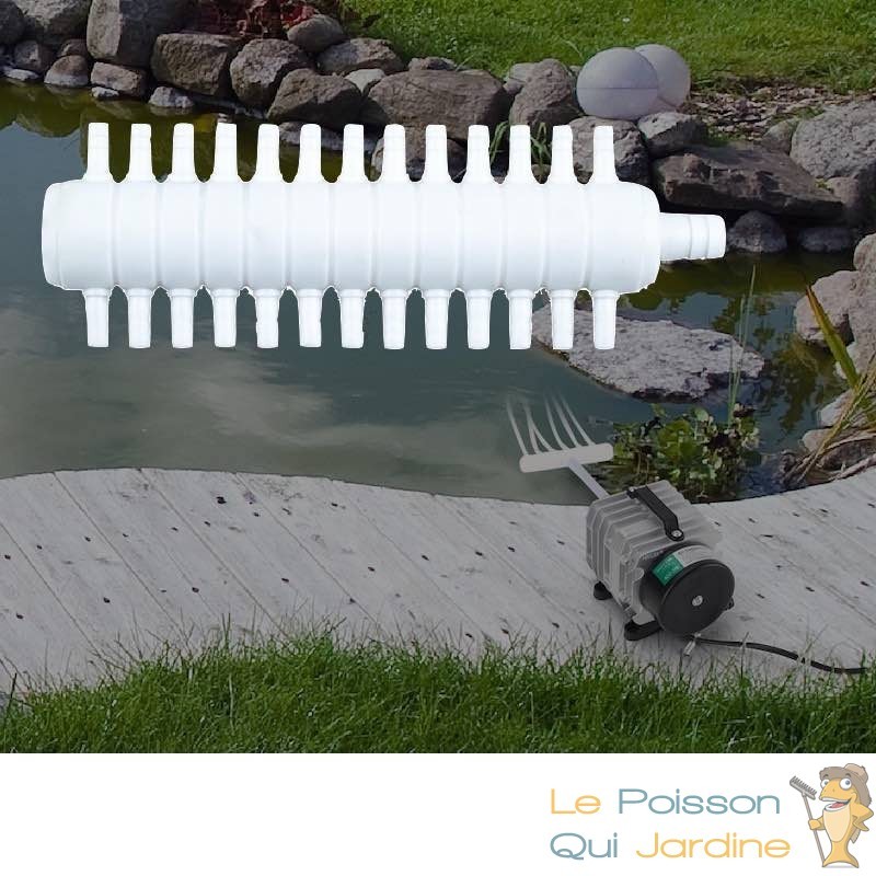 L'utilisation est simple. Il suffit de la brancher au compresseur ou à la pompe à air et ensuite, de " partir " avec du tuyau cristal sur chacune des sorties. Au bout du tuyau, on ajoutera un diffuseurs d'air afin de diffuser les bulles d'air.