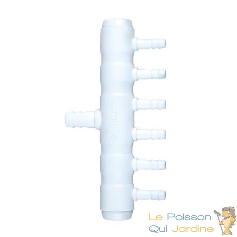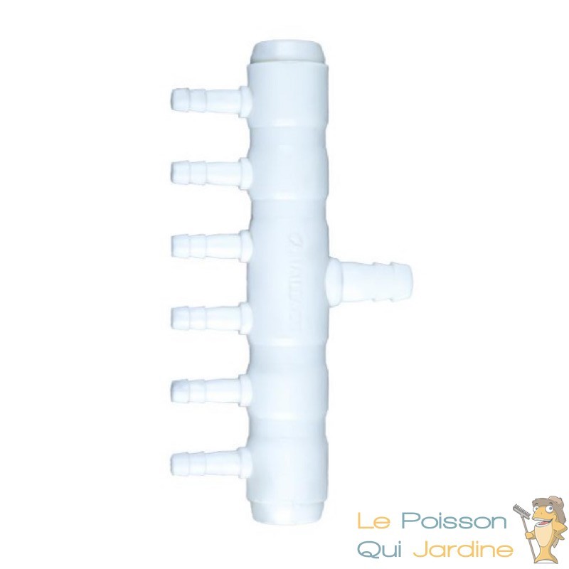 Multi diviseur pour pompes à air d'aquarium ou compresseur bassin de jardin. Ce répartiteur est très utile pour diviser et répartir les différents points de diffusion d'oxygène dans un bassin de jardin par exemple.