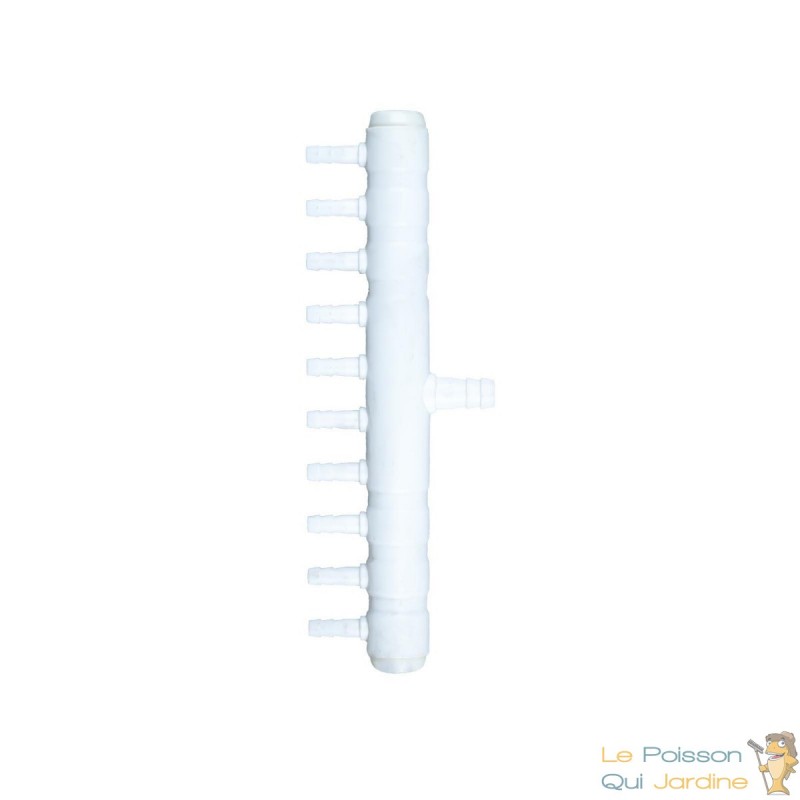 L'utilisation est simple. Il suffit de la brancher au compresseur ou à la pompe à air et ensuite, de " partir " avec du tuyau cristal sur chacune des sorties. Au bout du tuyau, on ajoutera un diffuseurs d'air afin de diffuser les bulles d'air.