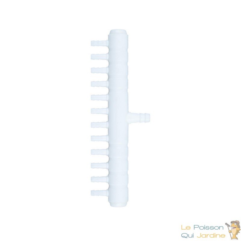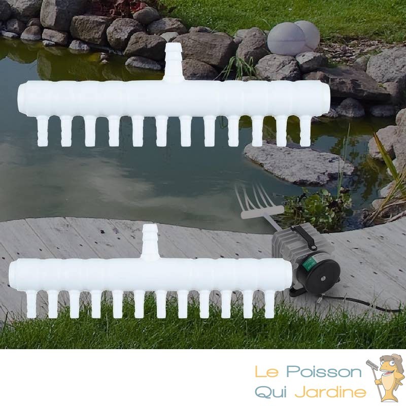 L'utilisation est simple. Il suffit de la brancher au compresseur ou à la pompe à air et ensuite, de " partir " avec du tuyau cristal sur chacune des sorties. Au bout du tuyau, on ajoutera un diffuseurs d'air afin de diffuser les bulles d'air.