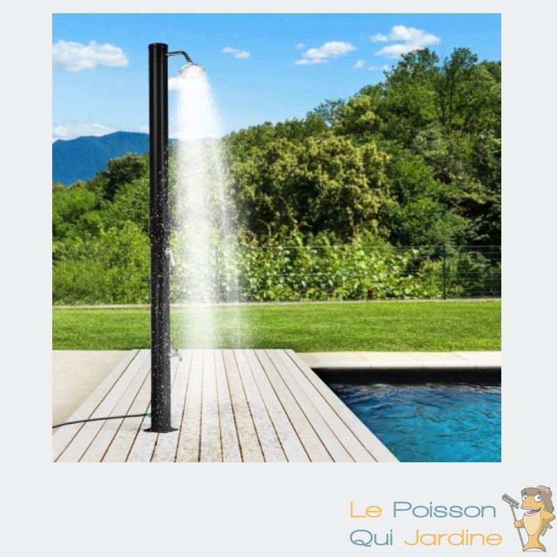 La douche solaire fonctionne en utilisant l'énergie solaire pour chauffer l'eau contenue dans son réservoir. Elle est équipée d'un pommeau de douche et d'un mitigeur pour régler la température de l'eau selon vos préférences. Son utilisation est simple : il suffit d'actionner le pommeau de douche pour profiter d'une douche rafraîchissante ou réconfortante après une baignade.