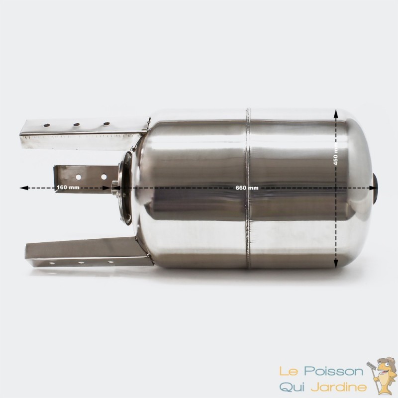 Réservoir à vessie ou ballon pour stocker de l'eau et la mettre sous pression afin d'être utilisée dans l'installation et l'alimentation sanitaire de votre maison ( toilettes, machines à laver ou encore lave vaisselle ) ou pour le système d'arrosage par exemple.