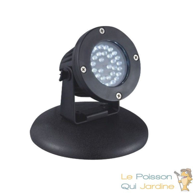 Décoration du bassin de jardin sous forme de lampes LED donc qui est très économe en énergie électrique. Résiste, forcément, aux intempéries puisque ce spot est totalement étanche et peut être placé au fond de l'eau.