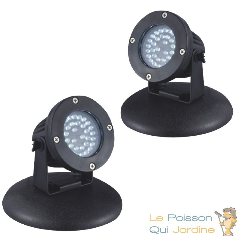 Nous vous proposons un lot de 2 spots LED 2,2 W immergeables pour bassins de jardin et étangs extérieurs.