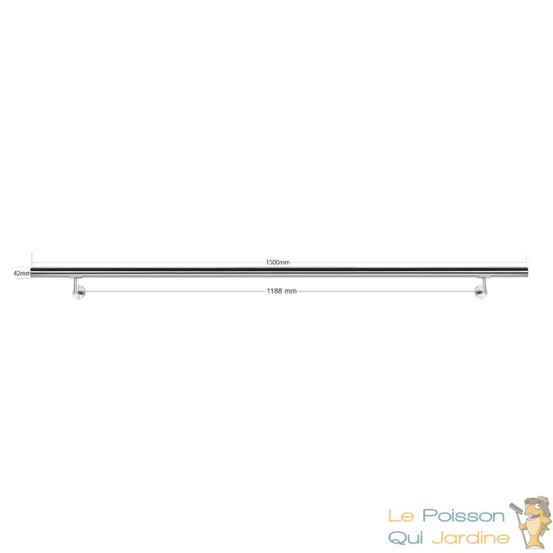 Le diamètre de la main courante est de 4,2 cm et le diamètre des supports d'attache est de 12 mm.