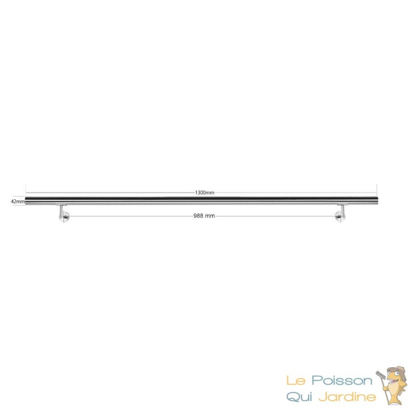 Le diamètre de la main courante est de 4,2 cm et le diamètre des supports d'attache est de 12 mm.
