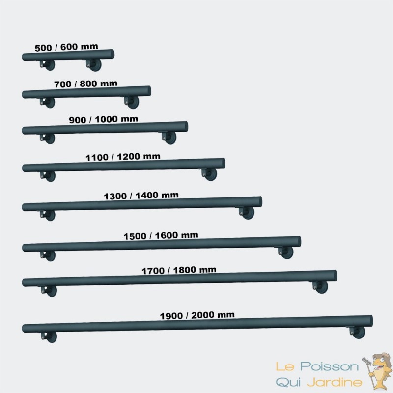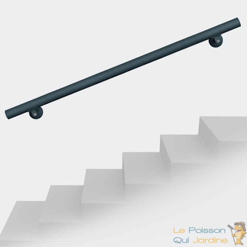 Ces coloris sont acier brossé, noir, gris anthracite ou blanc et les tailles pour cette main courante d'escalier sont de 50 cm à 2 mètres de longueur.
