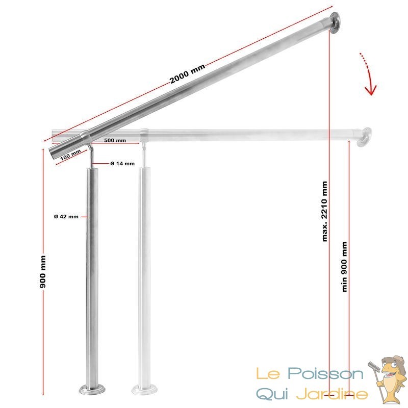 Le diamètre de la main courante est de 4,2 cm et le diamètre des supports d'attache est de 12 mm.