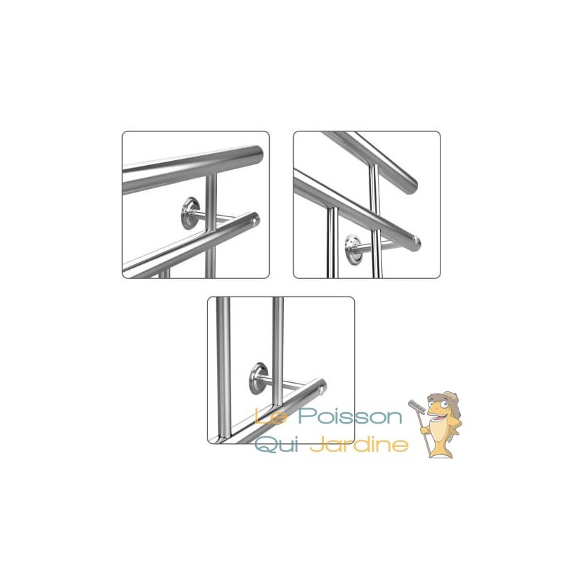 Les tubes de la balustrade sont pourvus d'extrémités fermées, renforçant ainsi la sécurité en éliminant les bords tranchants. Le nombre de tiges de remplissage varie en fonction de la taille de la rambarde, assurant une distribution équilibrée des barres pour une résistance optimale. Les barres sont espacées de 11 cm, garantissant à la fois la sécurité des occupants tout en maintenant une apparence élégante et épurée.