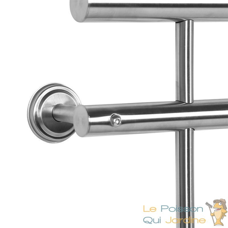 Dimensions: 1280 x 900 mm Main courante: Ø 38mm Tiges horizontales : Ø 32 mm Tiges verticales: Ø 19 mm Distance entre les tiges: 110 mm Distance du mur: 85 mm Plaque de montage Ø : 60 mm Espacement des trous : 35 mm Ø trou pour vissage : 7 mm