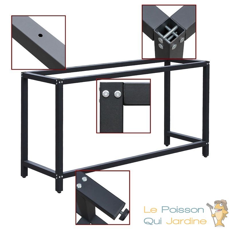 Le châssis d'établi 150 X 50 X 80 cm est une solution polyvalente et pratique pour la création d'une table de travail personnalisée, que ce soit pour des projets de bricolage, des tâches d'emballage ou des travaux professionnels dans des entrepôts, des ateliers ou des garages.