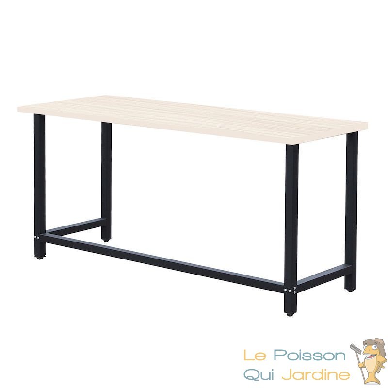 Le design du châssis permet une grande flexibilité dans le choix du plateau de table. Vous pouvez utiliser une planche en bois, une plaque de métal ou tout autre matériau de votre choix pour créer la surface de travail qui répond le mieux à vos besoins spécifiques. De plus, vous pouvez décider de la taille exacte de la planche que vous souhaitez utiliser, ce qui vous offre une personnalisation totale de votre établi en fonction de l'espace disponible et des exigences de votre projet.