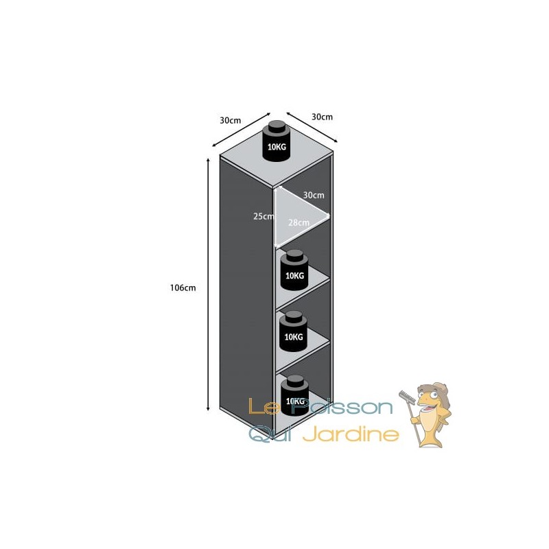 Dimensions totales (HxLxP) : 106 x 30 x 30 cm.