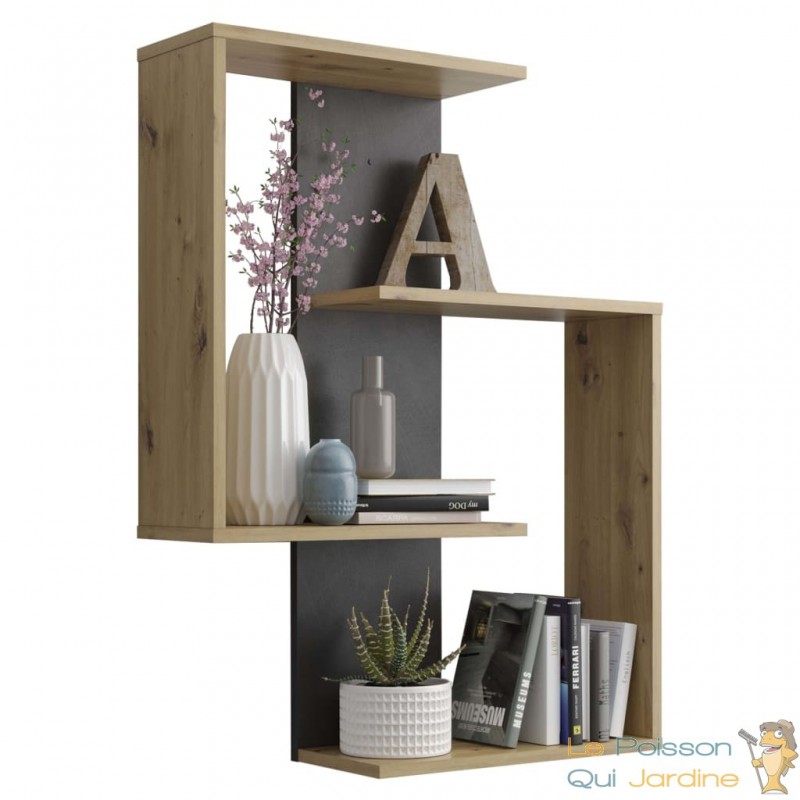 Cette étagère murale est fabriquée en aggloméré de haute qualité recouvert de mélamine, ce qui la rend à la fois solide et durable. Elle est conçue avec deux compartiments ouverts d'un côté, offrant amplement d'espace pour organiser vos objets de décoration ou votre collection de livres. De plus, ses quatre étagères sont habilement reliées à une magnifique planche qui présente une couleur contrastante, ajoutant une touche esthétique à votre espace.