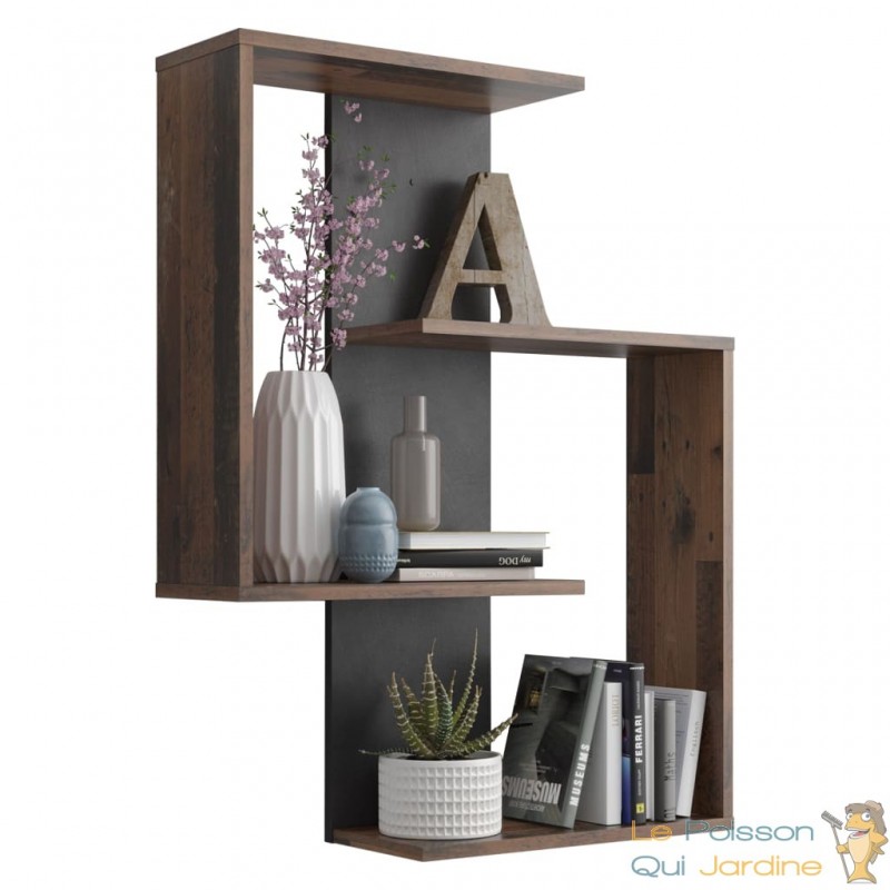 Cette étagère murale est fabriquée en aggloméré de haute qualité recouvert de mélamine, ce qui la rend à la fois solide et durable. Elle est conçue avec deux compartiments ouverts d'un côté, offrant amplement d'espace pour organiser vos objets de décoration ou votre collection de livres. De plus, ses quatre étagères sont habilement reliées à une magnifique planche qui présente une couleur contrastante, ajoutant une touche esthétique à votre espace.