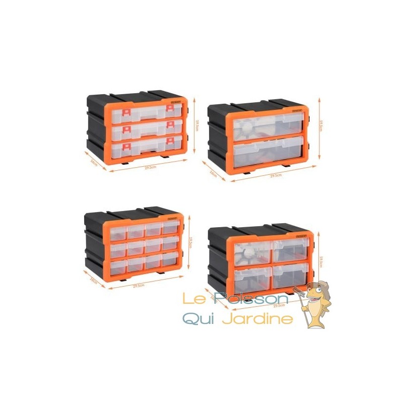 Ne laissez plus le désordre vous ralentir ! Ces organiseurs sont parfaits pour ranger vos vis, vos outils et toutes sortes de petites pièces. Grâce à leur conception compacte, solide et durable, ils s'intègrent harmonieusement dans votre atelier ou votre maison, apportant un niveau supplémentaire de praticité et d'efficacité.