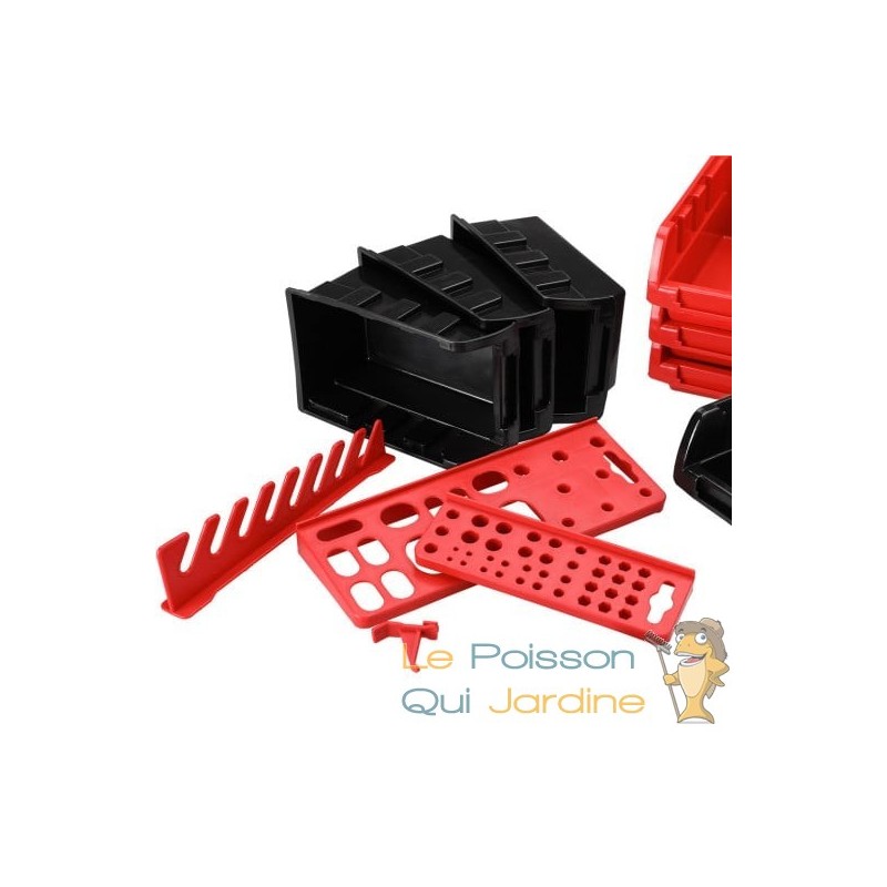 Gardez votre entrepôt, atelier ou salle de bricolage bien organisé et clair grâce à cette étagère murale pratique avec des boîtes empilables et un porte-outils. Elle vous permet de trier et d'organiser efficacement de petites pièces telles que des vis, des clous, des écrous, etc., les rendant toujours disponibles à portée de main. Dites adieu aux recherches interminables pour retrouver vos pièces ou outils.