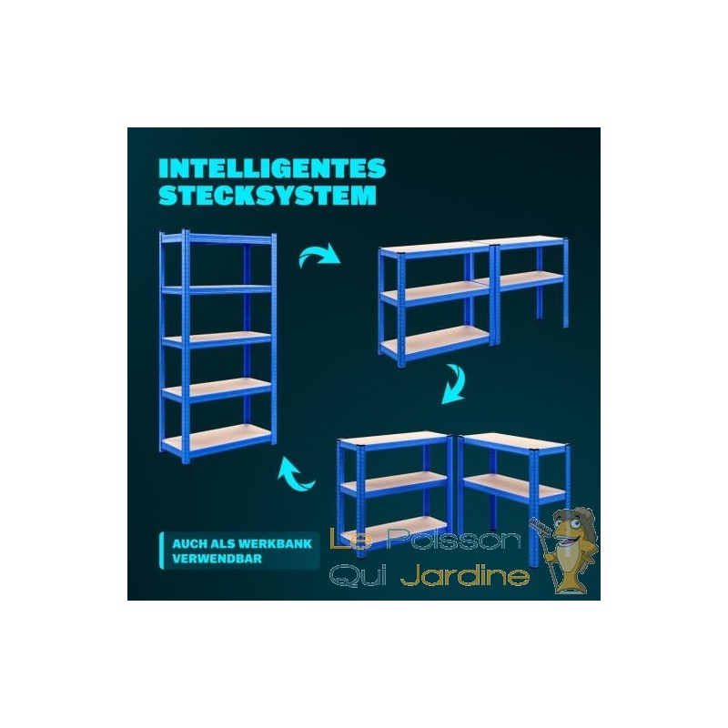 Étagère d'angles : Cette étagère est conçue pour optimiser les coins et les espaces difficiles à atteindre. Elle vous permet de tirer le meilleur parti de chaque centimètre carré de votre garage ou de votre entrepôt.