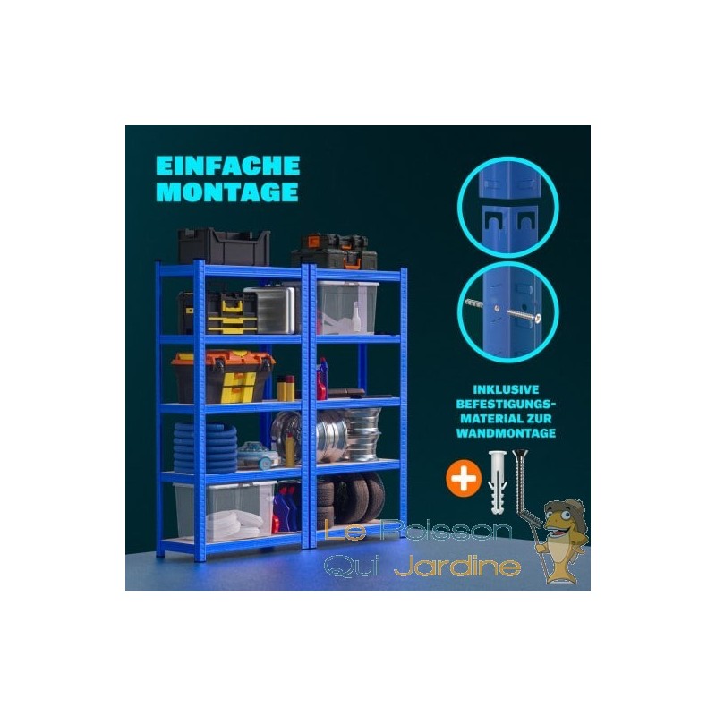 La structure de cette étagère est fabriquée en acier galvanisé, garantissant une grande solidité et une résistance durable à la corrosion. Cette construction robuste assure que l'étagère peut supporter des conditions d'utilisation intensives sans compromis sur la stabilité. Pour une sécurité accrue, l'étagère peut être fixée au mur, offrant une stabilité supplémentaire et empêchant tout risque de basculement.