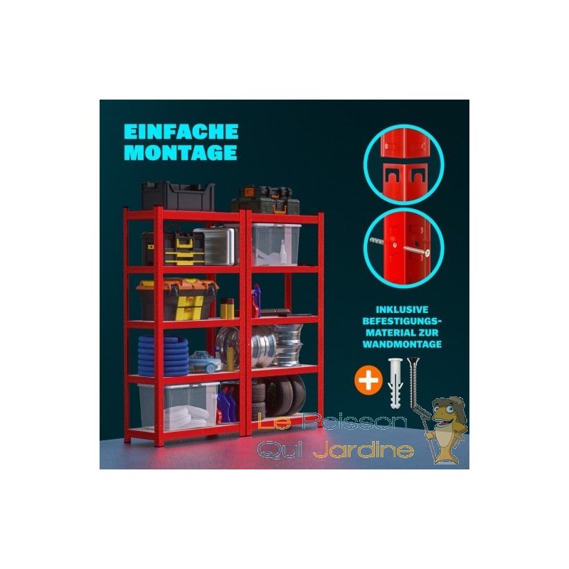 Parmi nos étagères de garage pour charges lourdes et pneus, notre modèle d'une profondeur de 40 cm et d'une hauteur de 180 cm est spécialement conçu pour le rangement de pneus sur deux niveaux. Sa structure en acier galvanisé garantit une grande solidité, et pour plus de sécurité, vous avez la possibilité de la fixer au mur. Cette étagère peut accueillir jusqu'à huit pneus, avec une capacité totale de 795 kg. Son plateau supérieur permet également de stocker du matériel supplémentaire. Les niveaux sont réglables indépendamment, offrant une grande flexibilité d'utilisation. Malgré sa capacité de charge élevée, cette étagère est simple à monter grâce à un système d'emboîtage pratique.