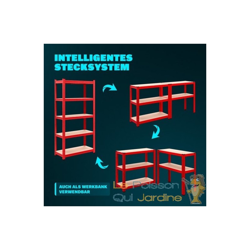 Notre catalogue propose une gamme complète d'étagères adaptées au rangement de pneus, d'outils de bricolage, de matériel lourd et fragile. Chaque étagère peut supporter jusqu'à 875 kg de poids total, avec une répartition équilibrée de 175 kg par plateau. Leur construction en acier garantit une grande robustesse, et leur montage est facile. Grâce à leur caractère modulaire, ces étagères s'adaptent parfaitement aux espaces restreints des serres, abris de jardin, garages, caves, plafonds mansardés et escaliers.