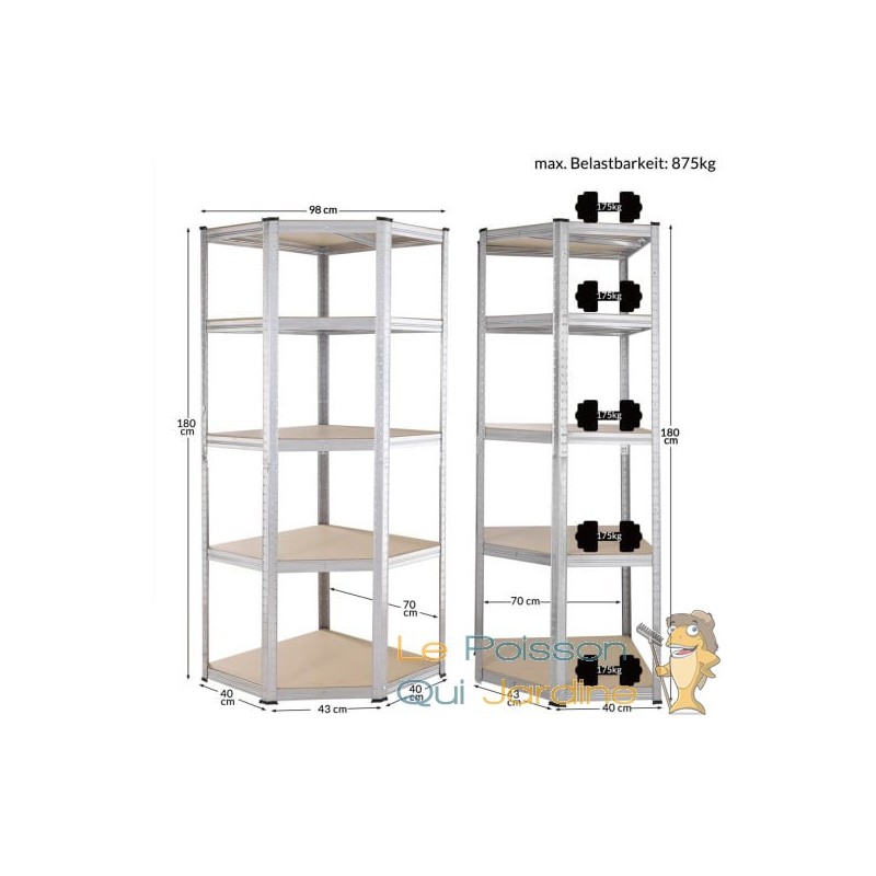 ✔ Capacité : jusqu’à 875 kg par étagère, 175 kg par plateau