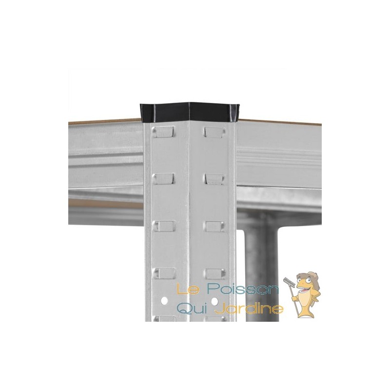 L'étagère d'angle, en acier zingué de haute qualité, s'installe facilement dans les coins du garage, vous permettant d'utiliser efficacement chaque centimètre disponible. Les croisillons renforcés assurent une stabilité sans faille, et chaque étagère peut supporter jusqu'à 875 kg de charge totale.