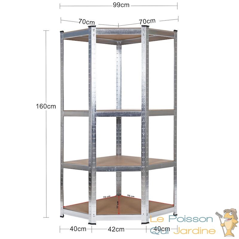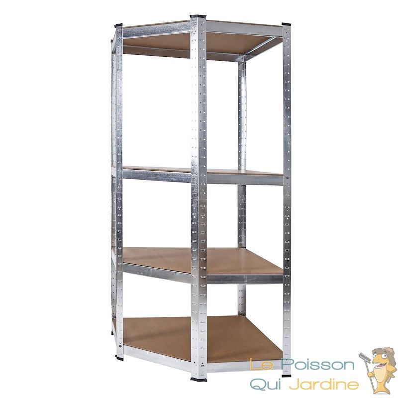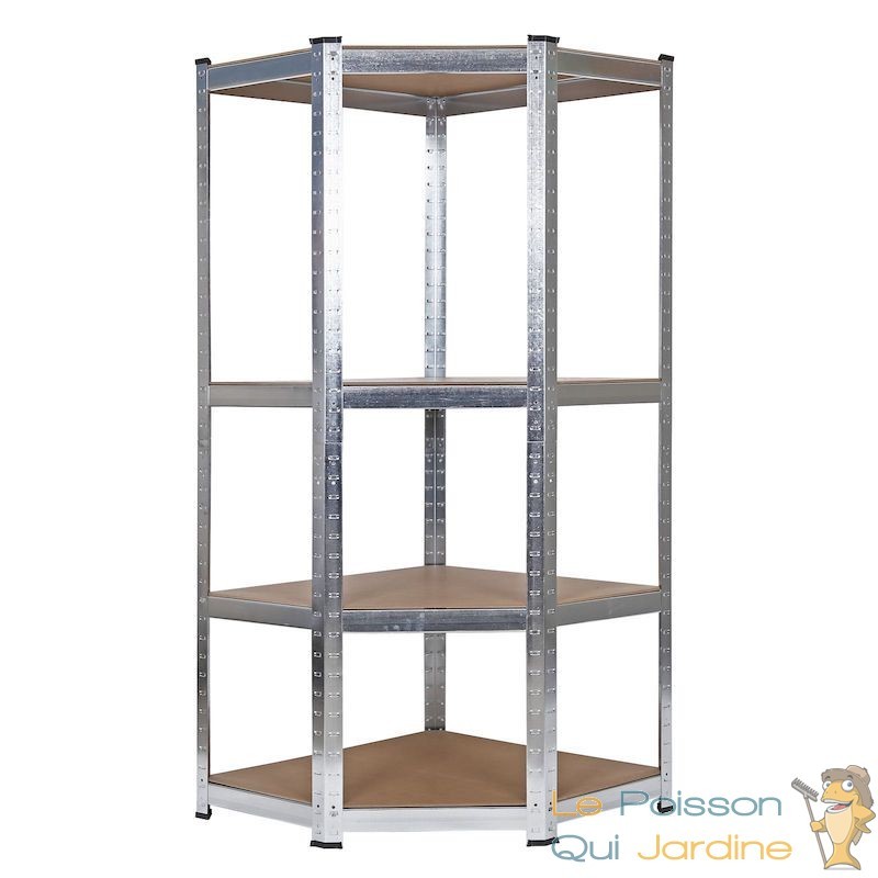 Gagnez en ordre et en espace de stockage dans votre garage, cave ou remise grâce à notre meuble à étagère d'angle pratique. Sa construction angulaire s'adapte aisément à presque tous les coins, vous permettant ainsi de maximiser l'espace sans encombrer la pièce. Une organisation bien pensée passe par un bon rangement !