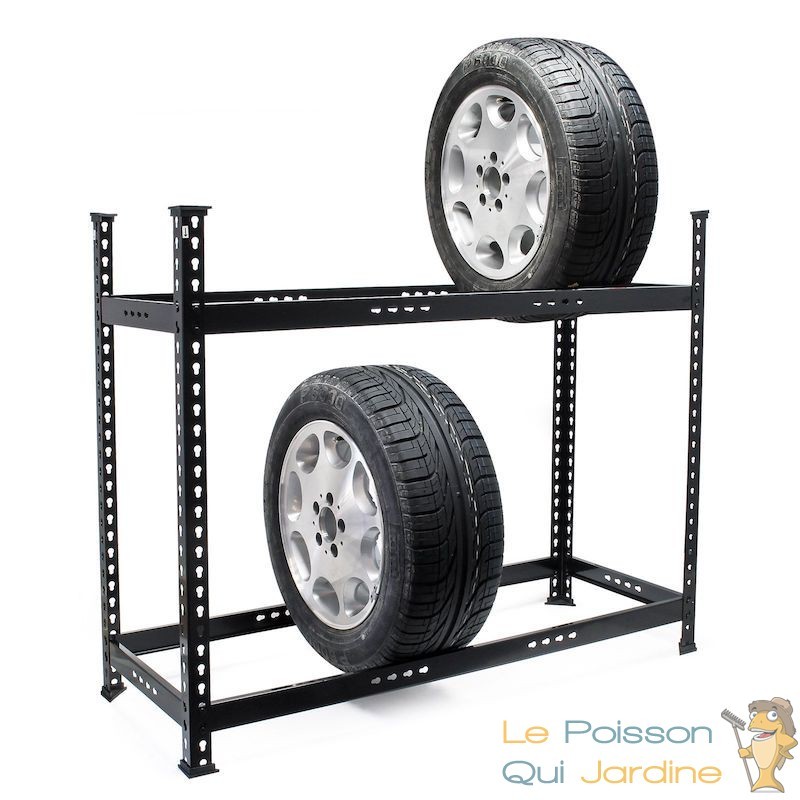 Fabriqué en acier robuste, ce rack pour pneus est conçu pour offrir une solution de stockage fiable et sécurisée. Sa construction solide lui permet de supporter jusqu'à 150 kg de pneus, offrant ainsi une capacité de stockage généreuse pour vos pneumatiques.
